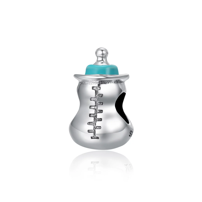 Acest talisman biberon din argint S925 este un accesoriu adorabil și plin de semnificație, ideal pentru a celebra venirea pe lume a unui copil sau pentru a oferi un cadou emoționant unei mame. Realizat din argint autentic, talismanul prezintă detalii fine și un design realist, completat de un accent albastru delicat, care îi conferă un plus de farmec. Perfect pentru brățări tip charm sau coliere, acest accesoriu simbolizează dragostea, protecția și începuturile frumoase ale maternității. Comercializat de Bijuterii Nadiela, talismanul este alegerea ideală pentru cei care caută o bijuterie cu valoare sentimentală, potrivită pentru mame, viitoare mame sau colecționare de charm-uri tematice.